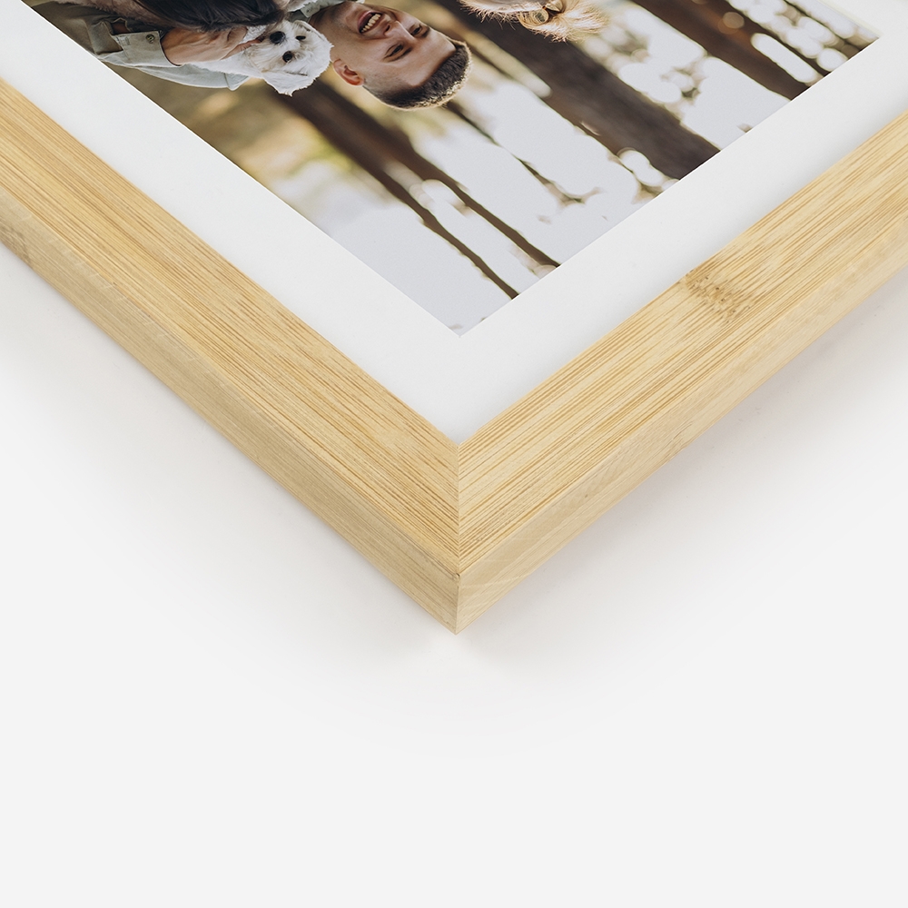 Moldura de alta qualidade, fabricada em madeira 100% Bamboo, garantindo durabilidade e um acabamento perfeito para destacar as tuas fotos.